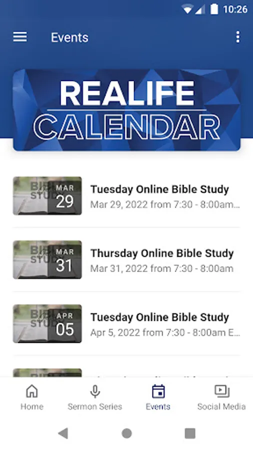 ReaLife is a church based in Erie, Pennsylvania. Through this app, you are able to keep up with what's happening at ReaLife and how you can get involved. You are also able to fill out your connect card, sign up for a group, listen to a podcast, and more. Download the app and check it out!