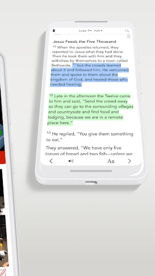 * Free Audio Bible: Click listen and you are instantly listening to the daily devotional plan. You can also look up any passage you want, the listen tab is in the bottom right hand corner at all times.