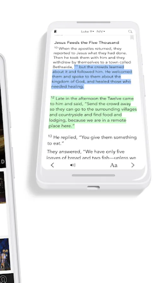 * Free Audio Bible: Click listen and you are instantly listening to the daily devotional plan. You can also look up any passage you want, the listen tab is in the bottom right hand corner at all times.