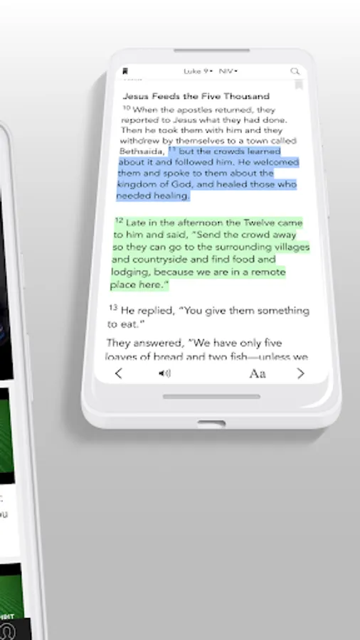 * Free Audio Bible: Click listen and you are instantly listening to the daily devotional plan. You can also look up any passage you want, the listen tab is in the bottom right hand corner at all times.