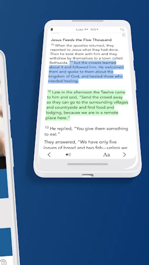 * Free Audio Bible: Click listen and you are instantly listening to the daily devotional plan. You can also look up any passage you want, the listen tab is in the bottom right hand corner at all times.