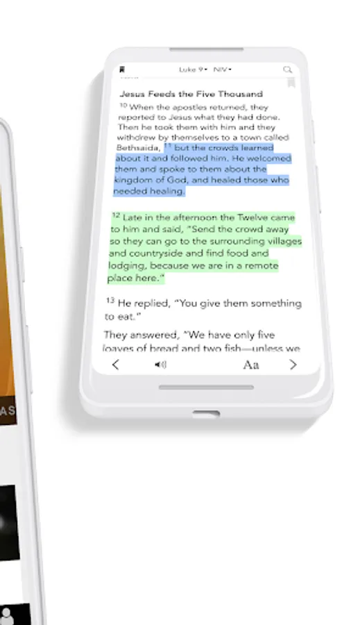 * Free Audio Bible: Click listen and you are instantly listening to the daily devotional plan. You can also look up any passage you want, the listen tab is in the bottom right hand corner at all times.