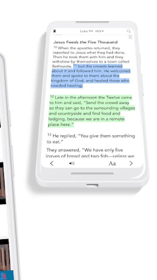 * Free Audio Bible: Click listen and you are instantly listening to the daily devotional plan. You can also look up any passage you want, the listen tab is in the bottom right hand corner at all times.