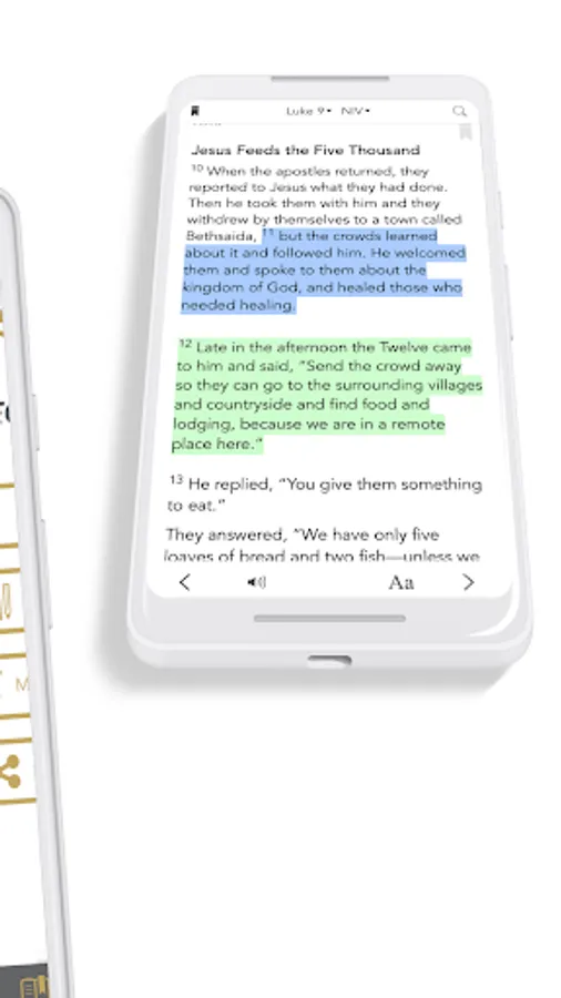 * Free Audio Bible: Click listen and you are instantly listening to the daily devotional plan. You can also look up any passage you want, the listen tab is in the bottom right hand corner at all times.