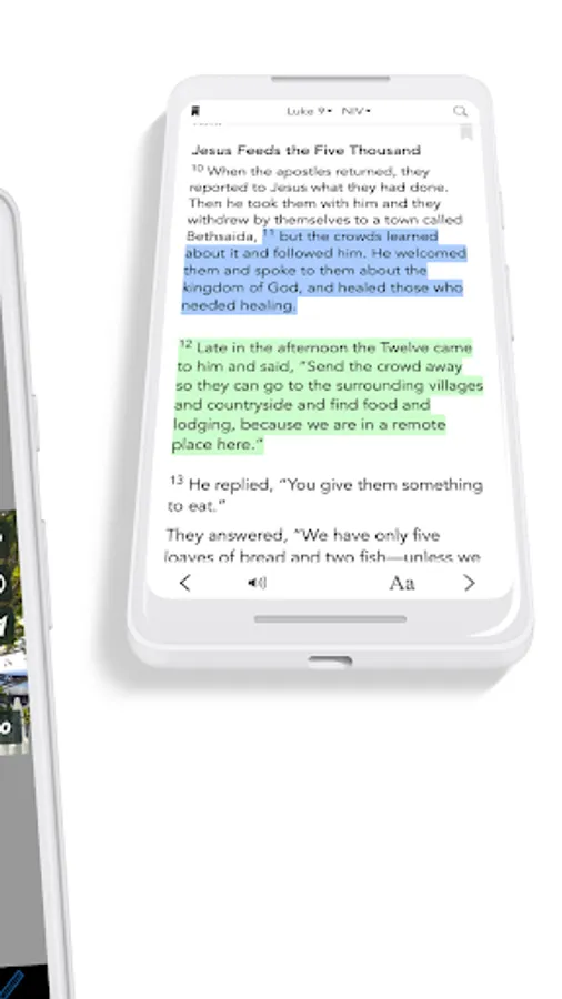 * Free Audio Bible: Click listen and you are instantly listening to the daily devotional plan. You can also look up any passage you want, the listen tab is in the bottom right hand corner at all times.