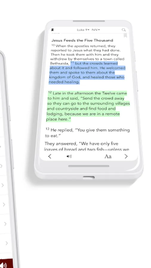 * Free Audio Bible: Click listen and you are instantly listening to the daily devotional plan. You can also look up any passage you want, the listen tab is in the bottom right hand corner at all times.