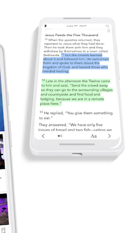 * Free Audio Bible: Click listen and you are instantly listening to the daily devotional plan. You can also look up any passage you want, the listen tab is in the bottom right hand corner at all times.
