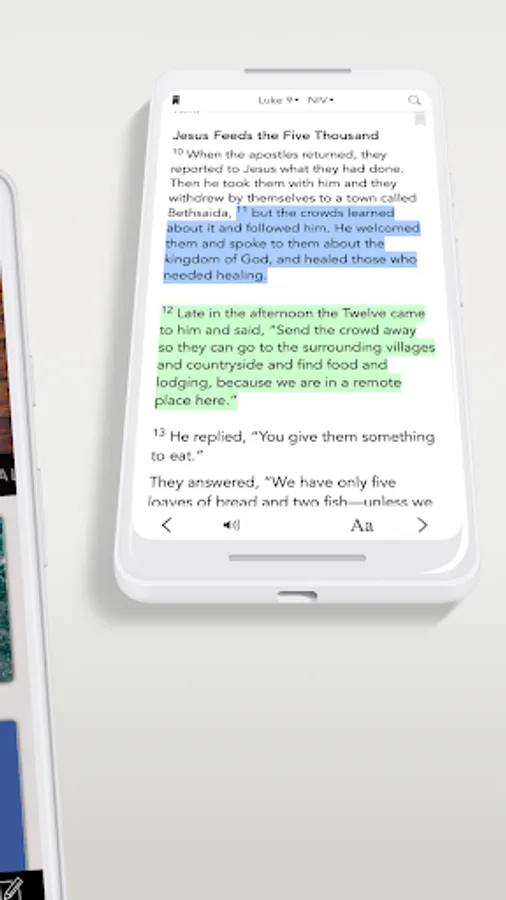 * Free Audio Bible: Click listen and you are instantly listening to the daily devotional plan. You can also look up any passage you want, the listen tab is in the bottom right hand corner at all times.