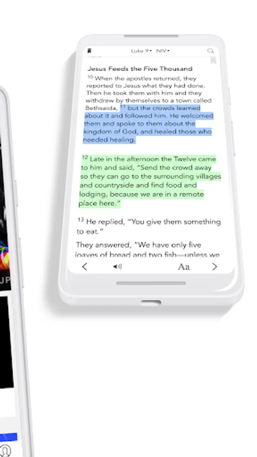 * Free Audio Bible: Click listen and you are instantly listening to the daily devotional plan. You can also look up any passage you want, the listen tab is in the bottom right hand corner at all times.