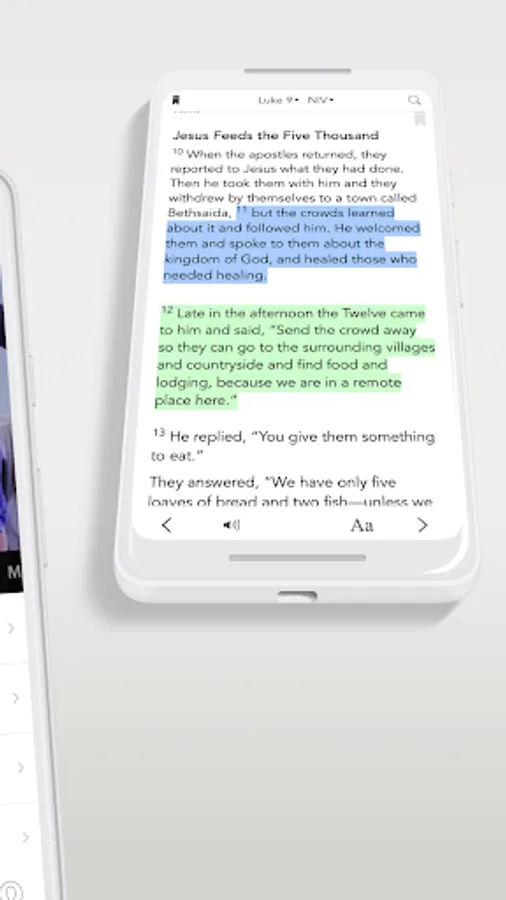 * Free Audio Bible: Click listen and you are instantly listening to the daily devotional plan. You can also look up any passage you want, the listen tab is in the bottom right hand corner at all times.