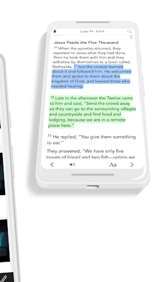 * Free Audio Bible: Click listen and you are instantly listening to the daily devotional plan. You can also look up any passage you want, the listen tab is in the bottom right hand corner at all times.