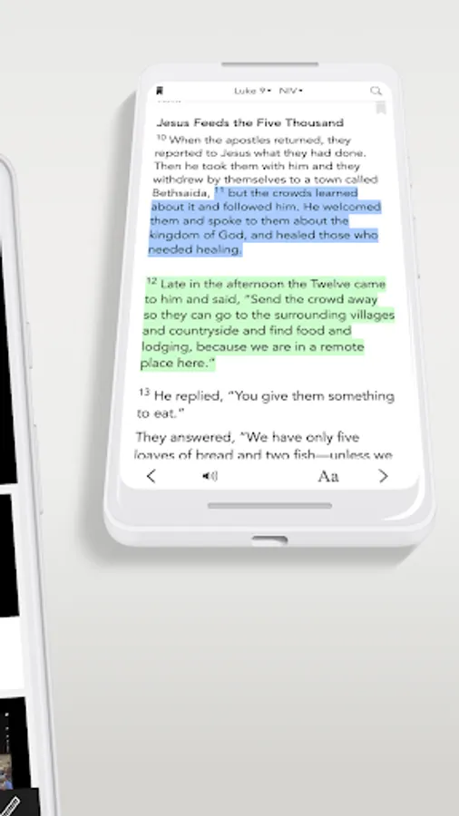 * Free Audio Bible: Click listen and you are instantly listening to the daily devotional plan. You can also look up any passage you want, the listen tab is in the bottom right hand corner at all times.