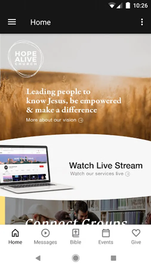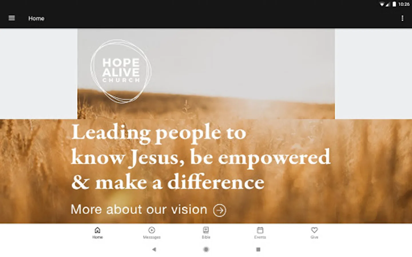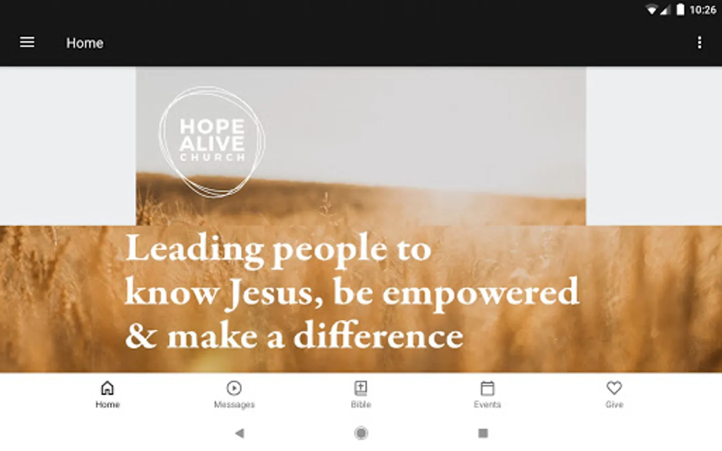 This app provides access to powerful messages, upcoming events, reading plans, sermon notes as well as other relevant information about Hope Alive Church.