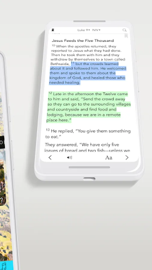 * Free Audio Bible: Click listen and you are instantly listening to the daily devotional plan. You can also look up any passage you want, the listen tab is in the bottom right hand corner at all times.