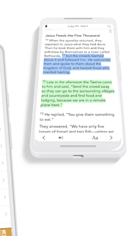 * Free Audio Bible: Click listen and you are instantly listening to the daily devotional plan. You can also look up any passage you want, the listen tab is in the bottom right hand corner at all times.