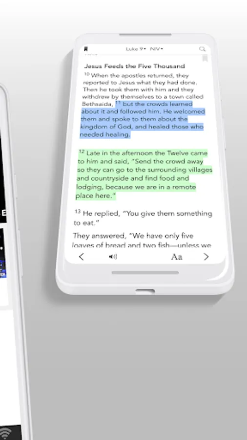 * Free Audio Bible: Click listen and you are instantly listening to the daily devotional plan. You can also look up any passage you want, the listen tab is in the bottom right hand corner at all times.