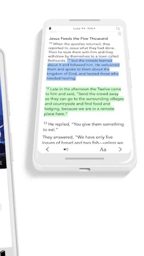* Free Audio Bible: Click listen and you are instantly listening to the daily devotional plan. You can also look up any passage you want, the listen tab is in the bottom right hand corner at all times.