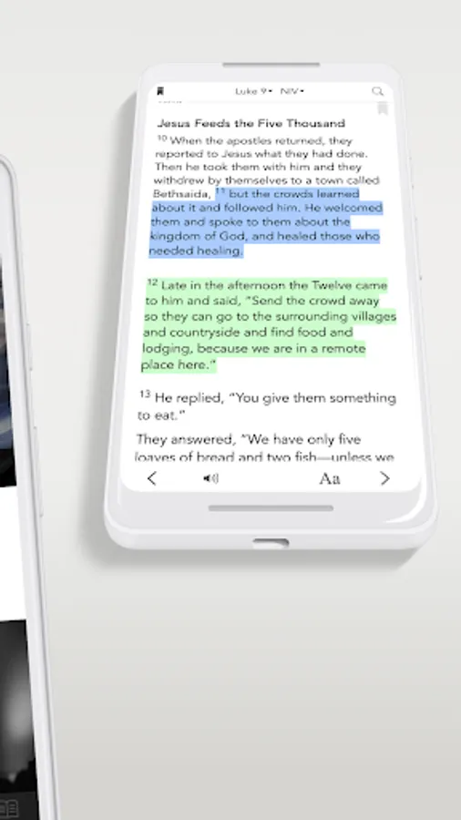 * Free Audio Bible: Click listen and you are instantly listening to the daily devotional plan. You can also look up any passage you want, the listen tab is in the bottom right hand corner at all times.