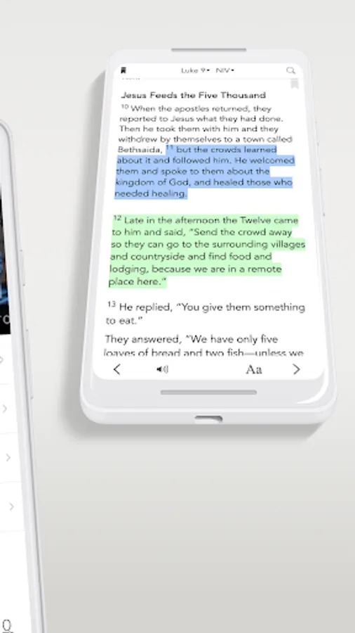 * Free Audio Bible: Click listen and you are instantly listening to the daily devotional plan. You can also look up any passage you want, the listen tab is in the bottom right hand corner at all times.