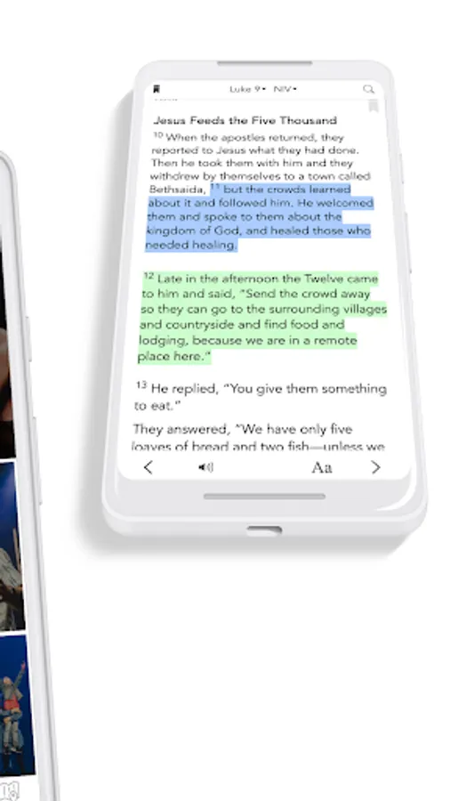 * Free Audio Bible: Click listen and you are instantly listening to the daily devotional plan. You can also look up any passage you want, the listen tab is in the bottom right hand corner at all times.