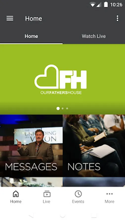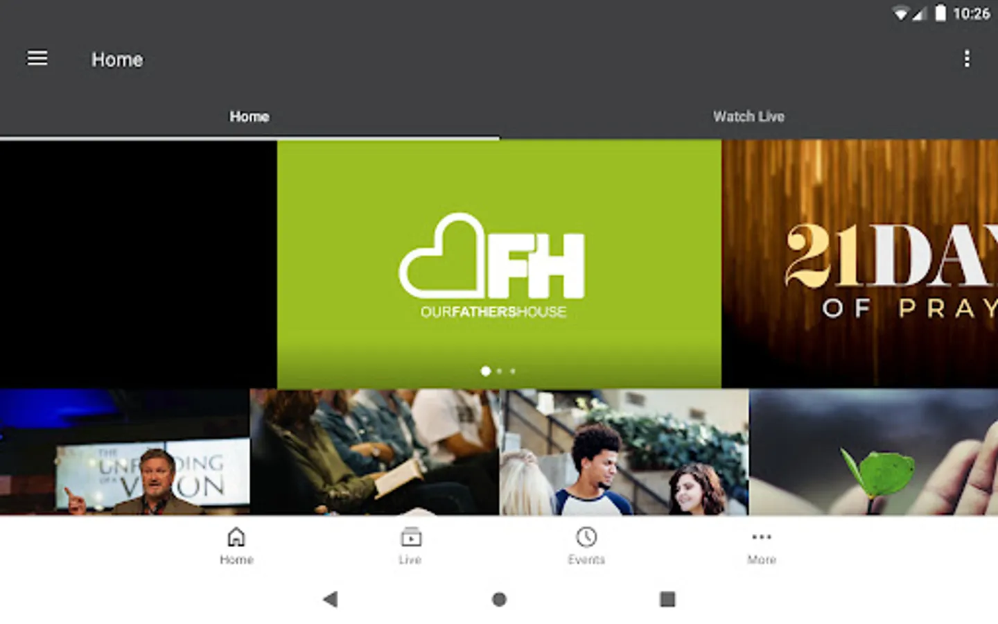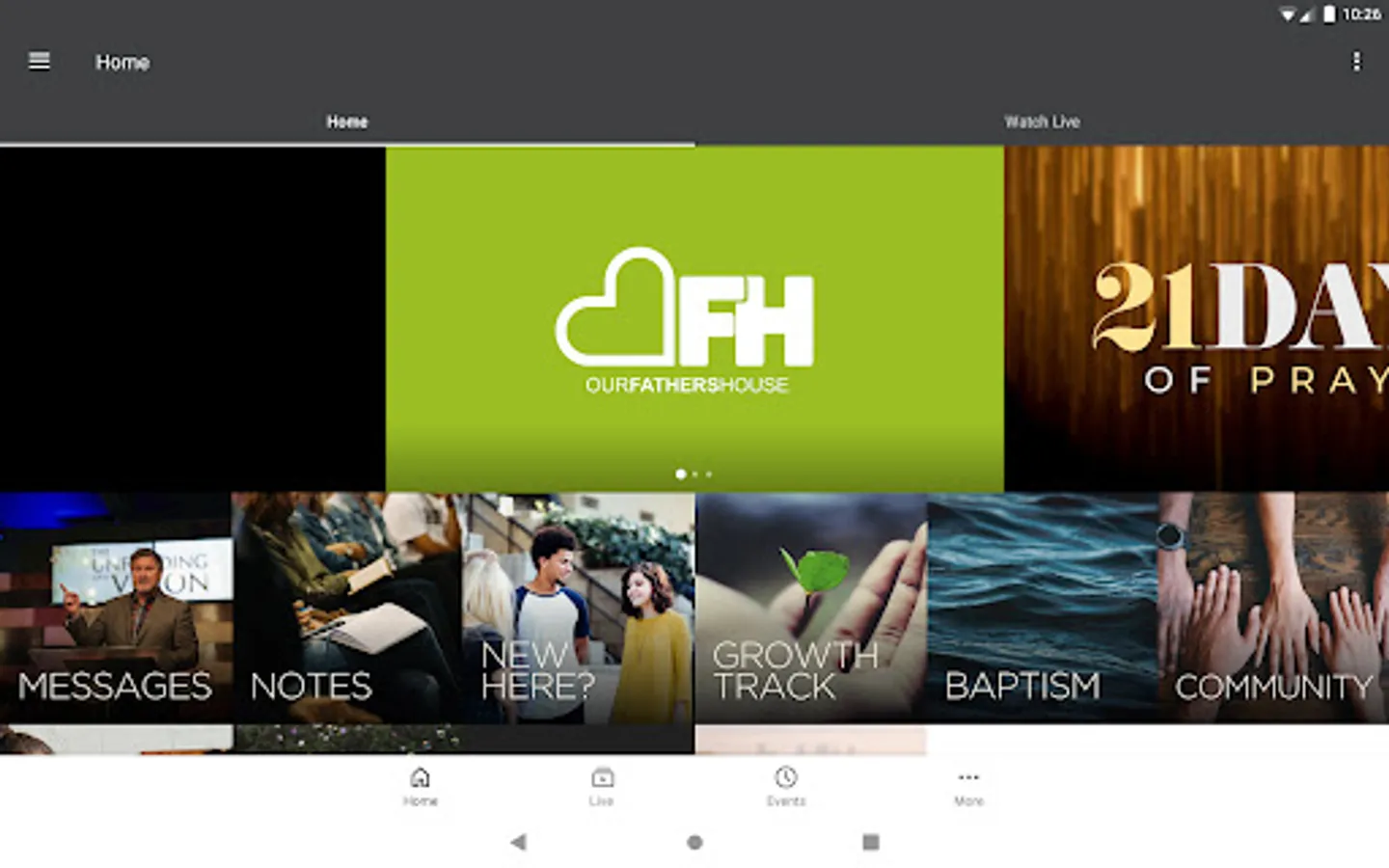 Our Fathers House App, features content from our weekend service and all areas of Church life here at OFH.
