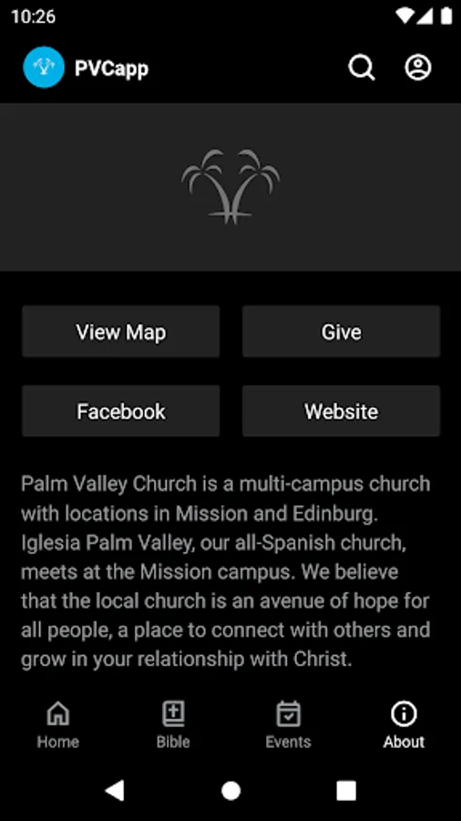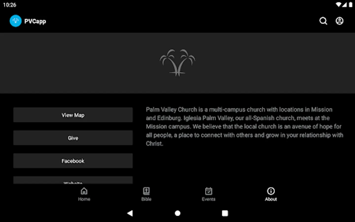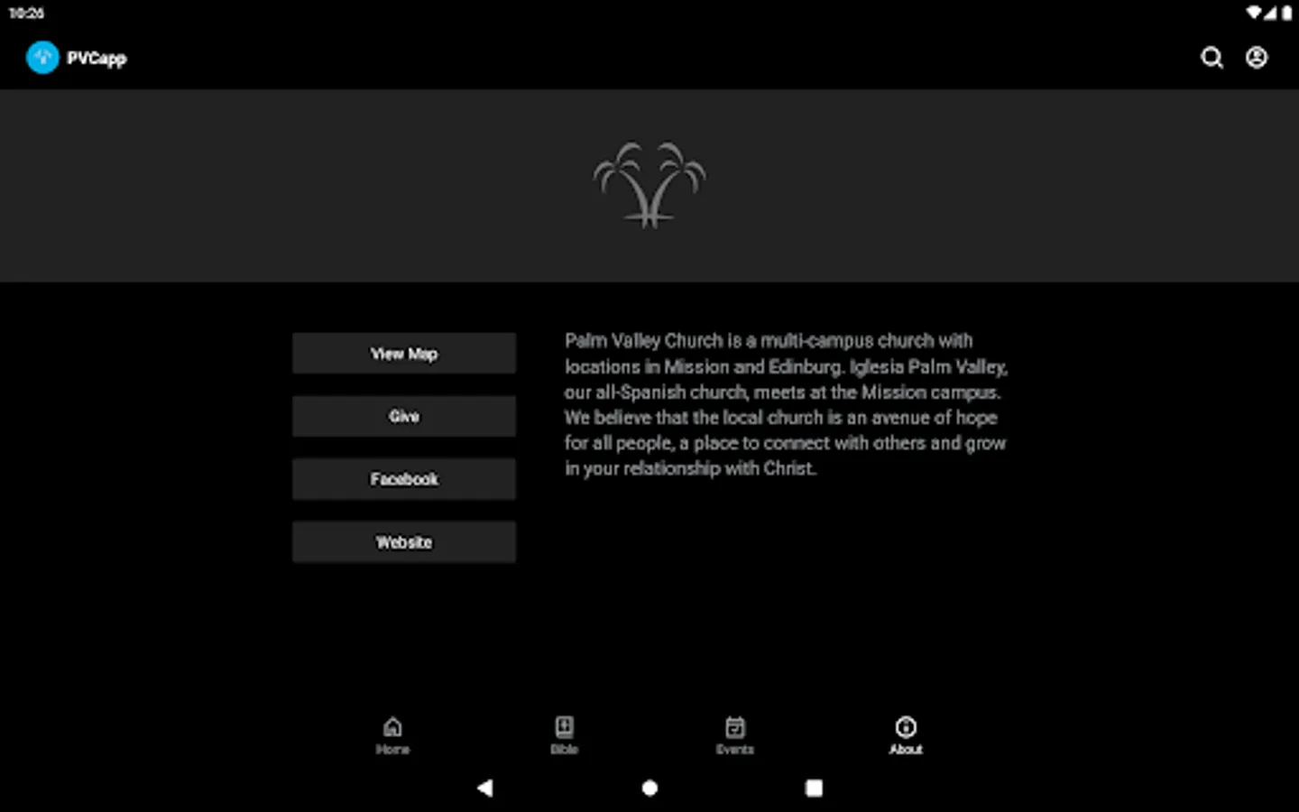 Stay connected with Palm Valley Church. You can listen back to recent messages, register for upcoming events, and easily give online. The PVCapp also enables you to quickly share what’s happening at church on Facebook or Instagram.