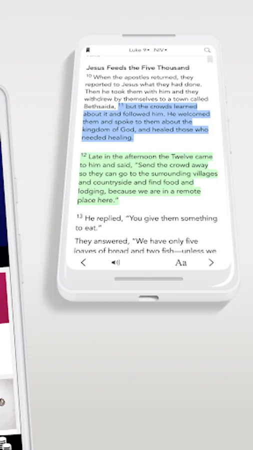 * Free Audio Bible: Click listen and you are instantly listening to the daily devotional plan. You can also look up any passage you want, the listen tab is in the bottom right hand corner at all times.