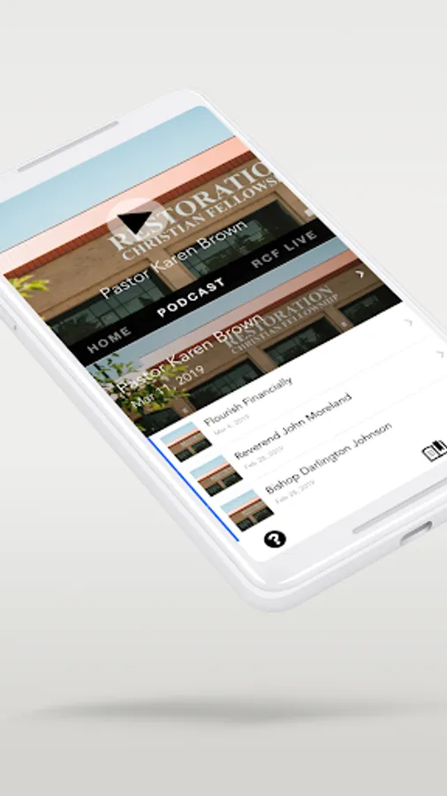 The RESTORATION FELLOWSHIP app was created by “Custom Church Apps TM”
