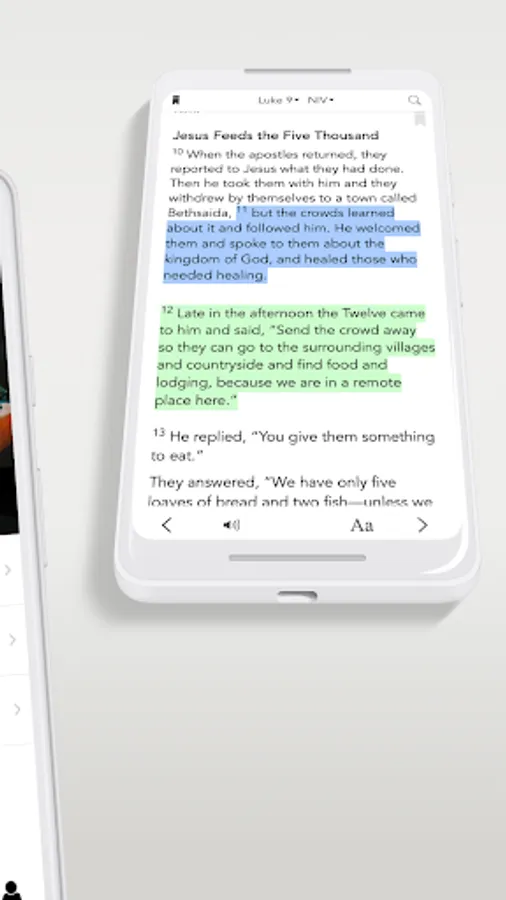 * Free Audio Bible: Click listen and you are instantly listening to the daily devotional plan. You can also look up any passage you want, the listen tab is in the bottom right hand corner at all times.