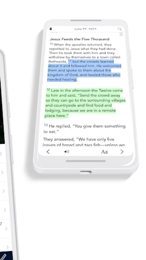 * Free Audio Bible: Click listen and you are instantly listening to the daily devotional plan. You can also look up any passage you want, the listen tab is in the bottom right hand corner at all times.