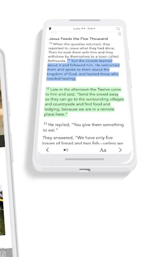 * Free Audio Bible: Click listen and you are instantly listening to the daily devotional plan. You can also look up any passage you want, the listen tab is in the bottom right hand corner at all times.