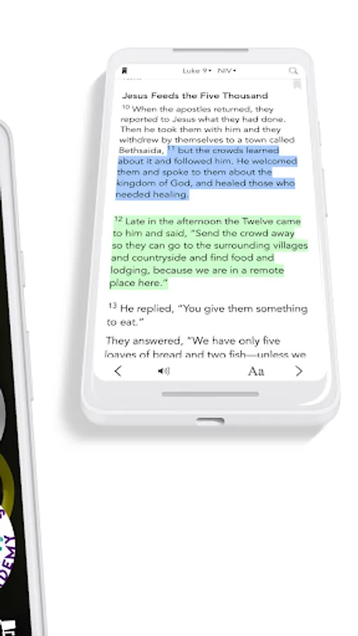 * Free Audio Bible: Click listen and you are instantly listening to the daily devotional plan. You can also look up any passage you want, the listen tab is in the bottom right hand corner at all times.