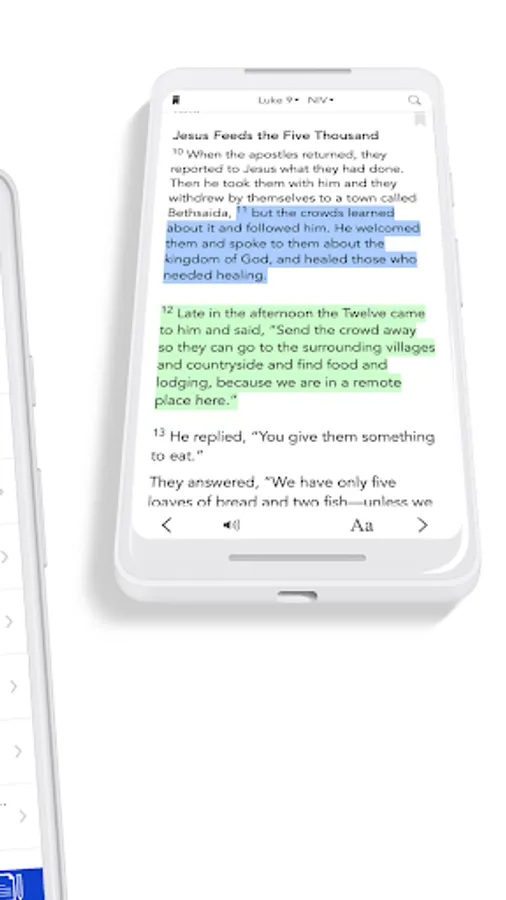 * Free Audio Bible: Click listen and you are instantly listening to the daily devotional plan. You can also look up any passage you want, the listen tab is in the bottom right hand corner at all times.