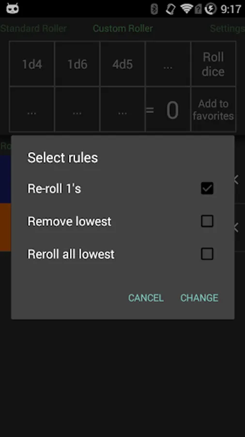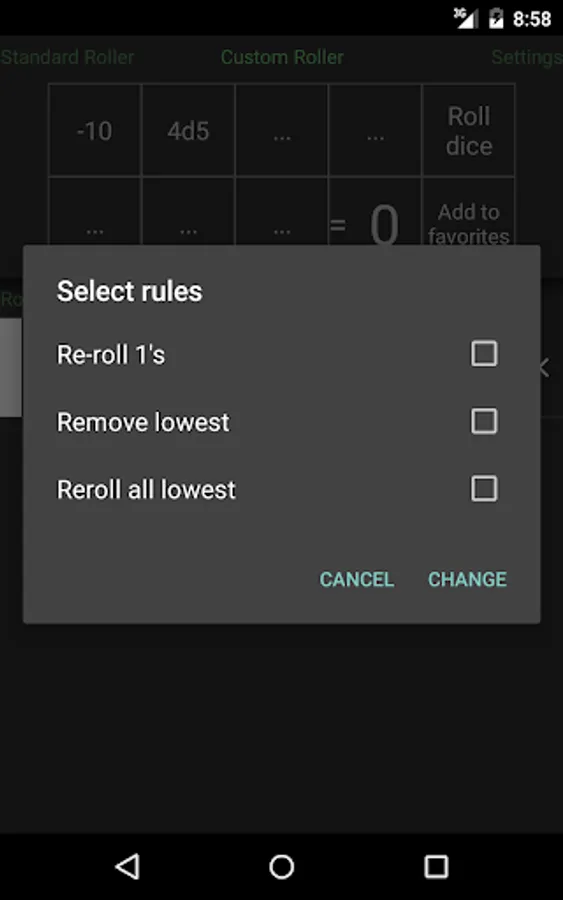 Custom roller - quickly create and save die sets containing up to 7 differently sided dice
