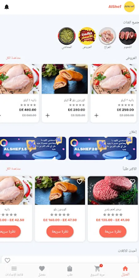 • AlShef adds food, offers and meals permanently on the site and the application.