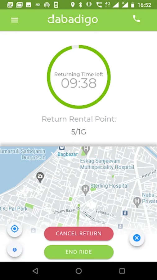 You can return your Scooter at any of our locations across the city. Just open the dabadigo app locate the nearest dabadigo point and return your Scooter there and you are done...