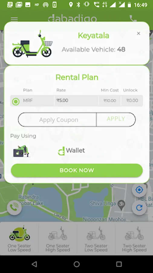 Locate a dabadigo Point near you. You can see how far you are from that location and whether a Scooter is available there or not. If a Scooter is available then you can book it or you can set up an alert to be notified of availability if no scooter is available at your desired location at the time.