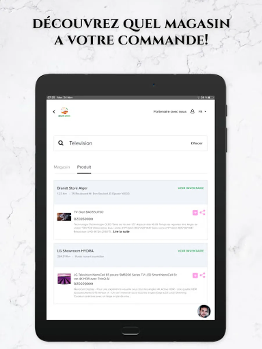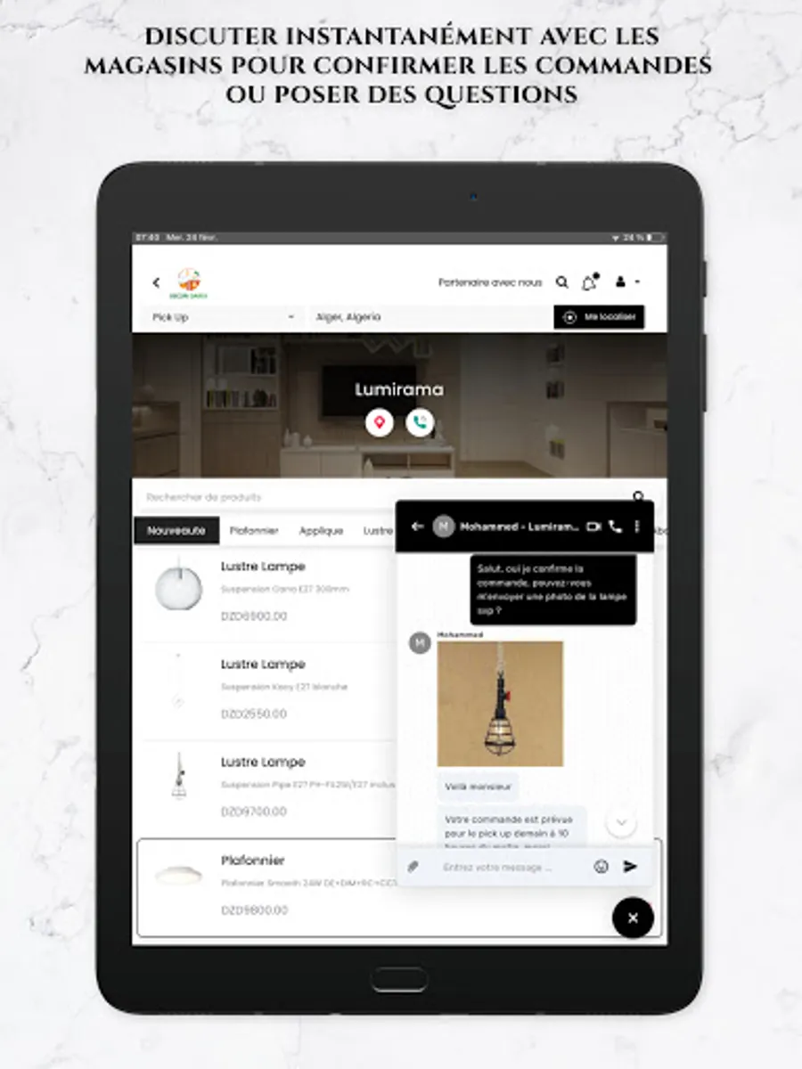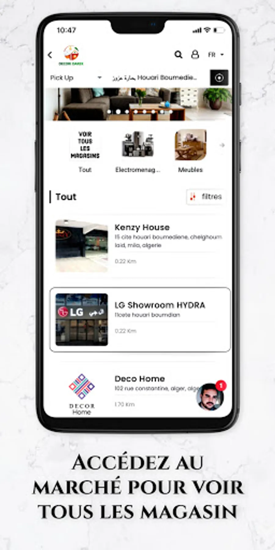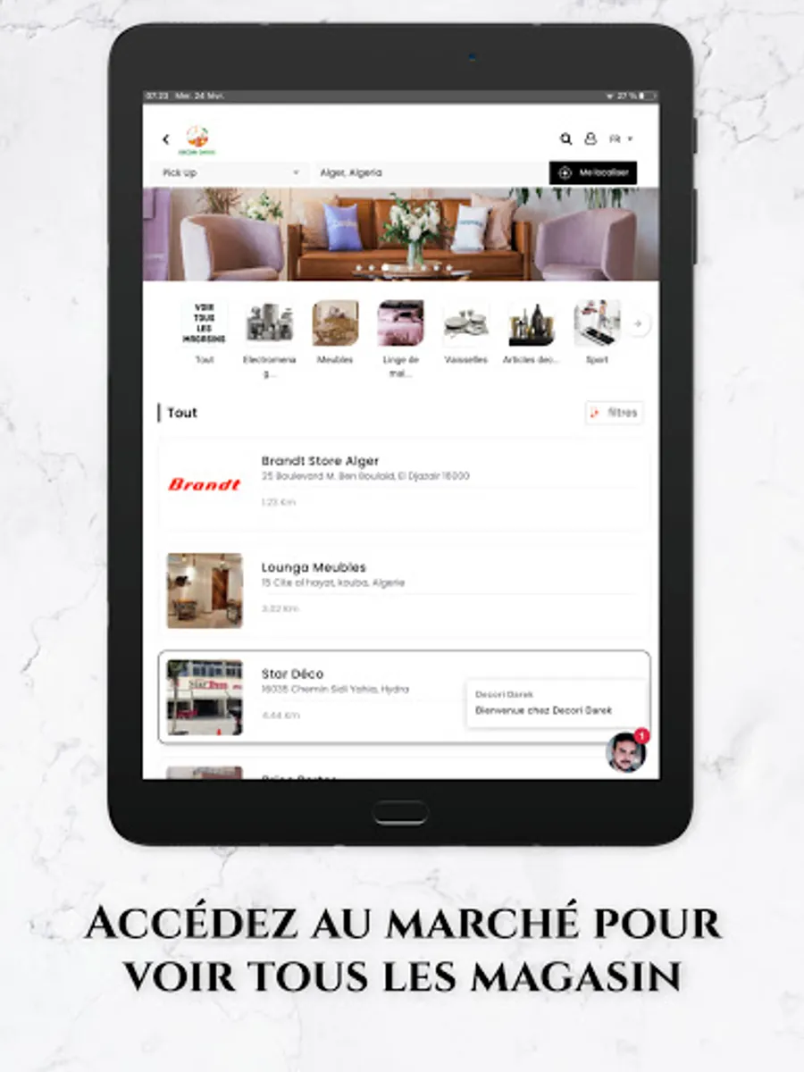Decori Darek is an Algerian platform (website, iOS app and Android app) to list the inventory of all items related to home furnishings, home appliances, chandeliers, sports equipment, rugs, household items. decoration, doors, kitchen utensils, and much more. Powered by geolocation technology, while searching for items, Decori Darek will show you the nearest store that has your item. Save time, energy and money by using our platform, from the comfort of your own home, start researching and comparing prices.