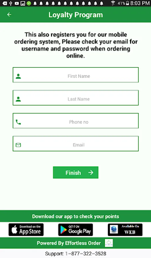 Effortless Order Customer Loyalty App is easy, fast and convenient to use.