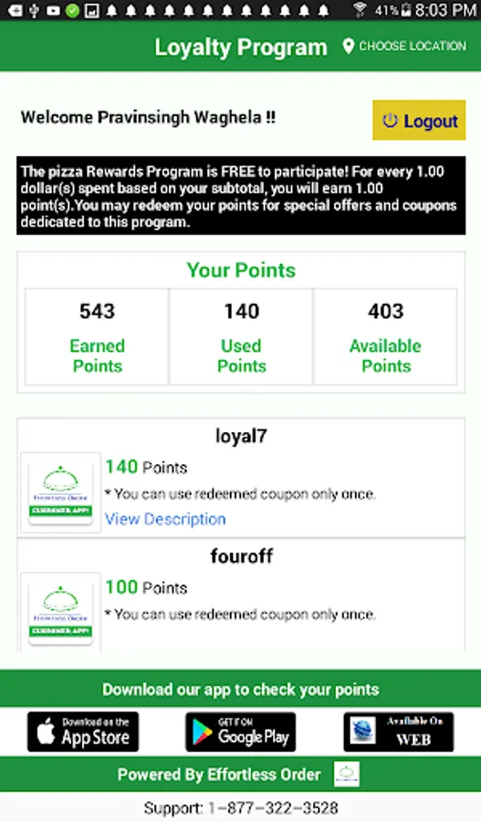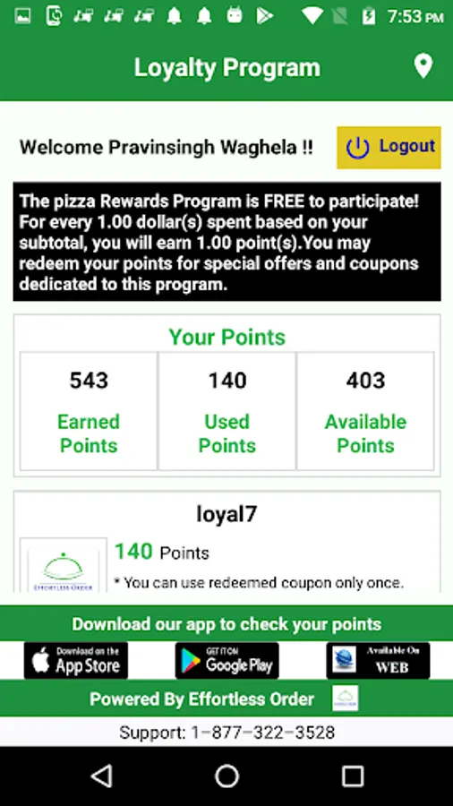 ✔ Register yourself to view your earned loyalty reward points.