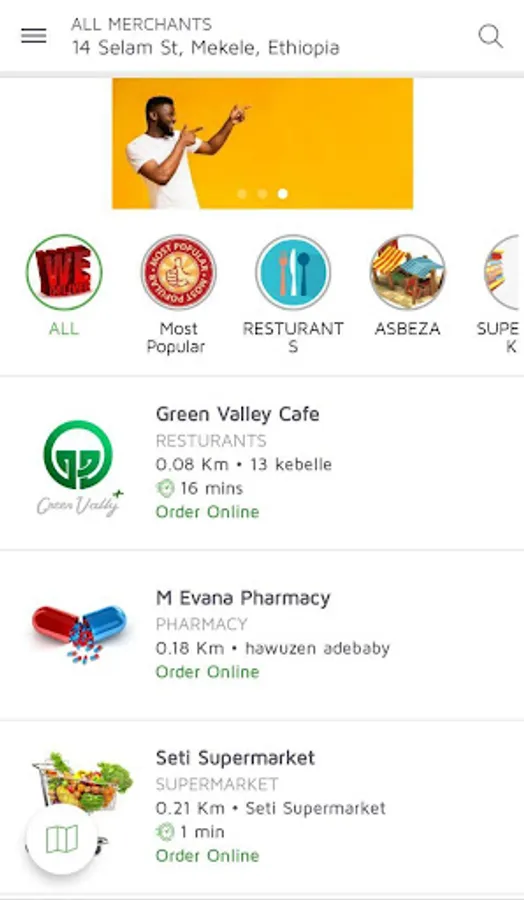 Now Get more than just your favorite food at your favorite place. Introducing Market & Pharmacy - a simple way for you to get your Groceries,Asbeza & Simple Pharmacy items delivered in Minutes (Available in selected market & Pharmacy ).