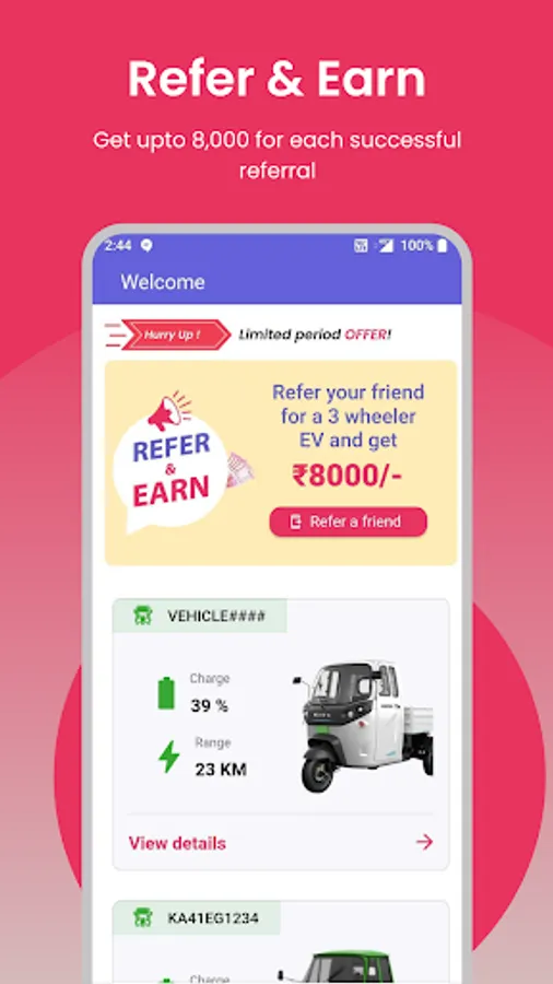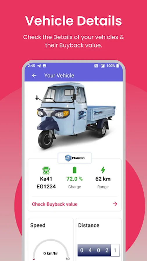 Get all information about your EV battery at your fingertips. With the Turno.Club App, you can monitor your electric vehicle’s battery life, battery range, EMI payment schedule, buyback value, and many more on your phone in real-time.
