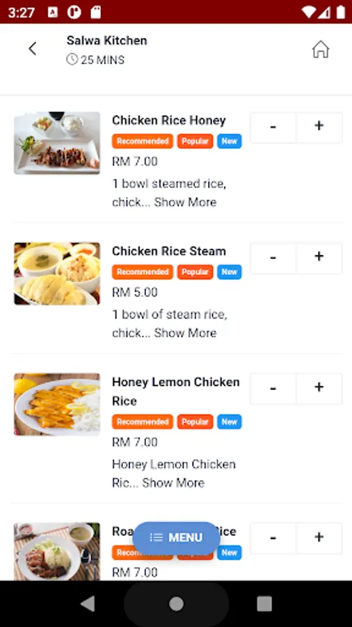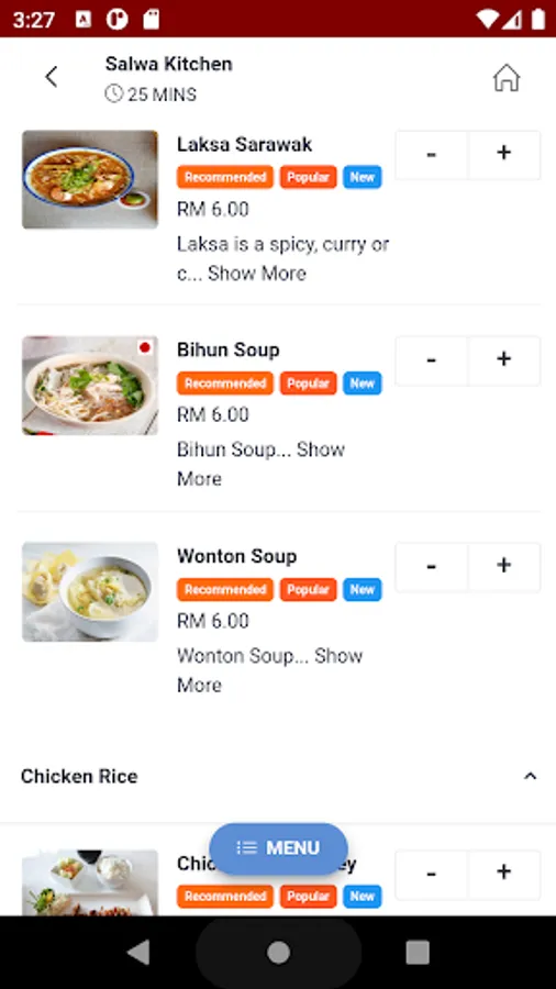 With Salwa Kitchen restaurant app you can easily order your favourite Chinese Muslim food such as local Malaysian hainanese Steam chicken rice, Roasted Chicken Rice, Honey BBQ Chicken Rice, BBQ chicken rice also Salwa Kitchen restaurant provides Sarawak local favourites foods wonton soup, mee kolok, laksa Sarawak, mee pok and much more. Download today and start order your favourite food from salwa Kitchen restaurant.
