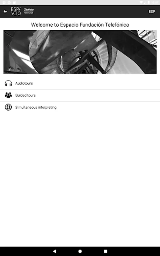 Telefónica Foundation application which allows you to connect and listen to museum audio guides, tour guide explanations and simultaneous interpretation channels for events organised by Fundación Telefónica Space in Madrid, when this service is available.