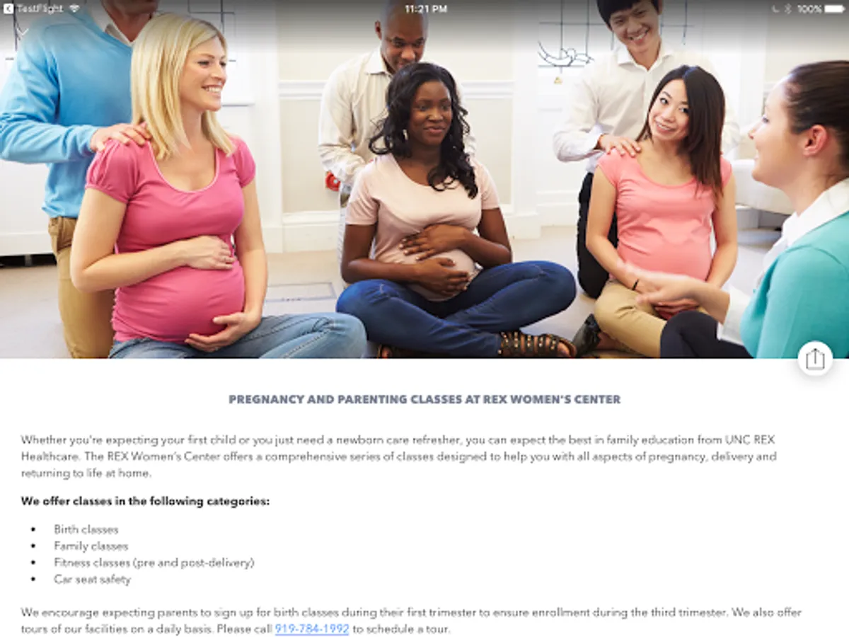 At UNC REX Healthcare, we are dedicated to helping you have the best birth experience possible. That starts with a healthy and informed pregnancy journey. Before you even enter our hospital to deliver, this app will guide you in the areas of having a healthy pregnancy, what to expect during your delivery at UNC REX, breastfeeding information, and proper care for both mom and baby.