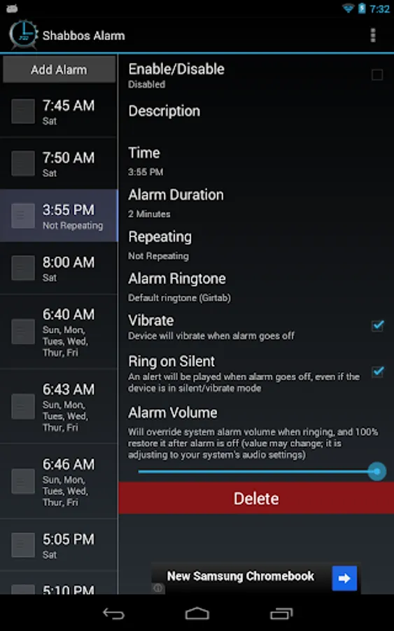 Use it as a Shabbos Alarm, a Yuntiff (YomTov) alarm, a Succos Alarm, a Pesach (Passover) Alarm, A Shavuos Alarm, a Rosh Hashanna Alarm, or even a Yom Kippur Alarm!!! You could even just use it as an everyday, highly customizable, custom alarm clock!