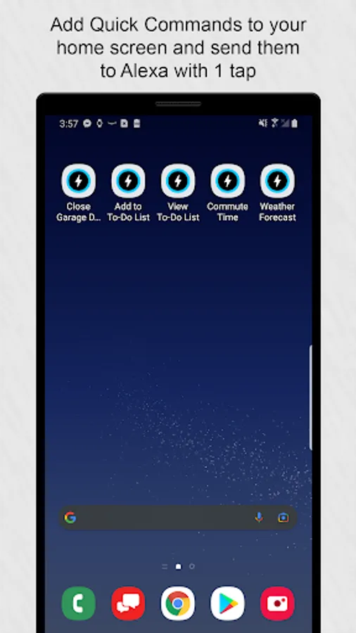 Add your most frequently Alexa commands to the Quick Commands list, so you can send them to Alexa with no talking or typing. Add the commands to your home screen and send them with a single tap.