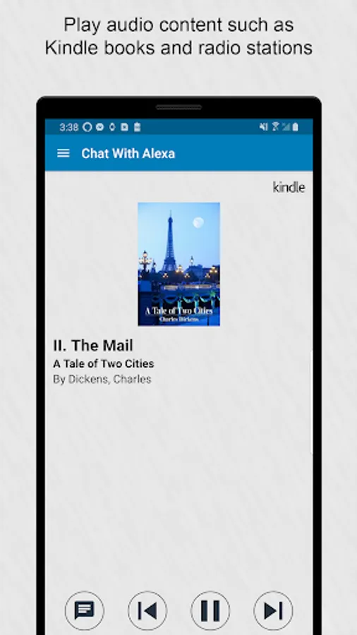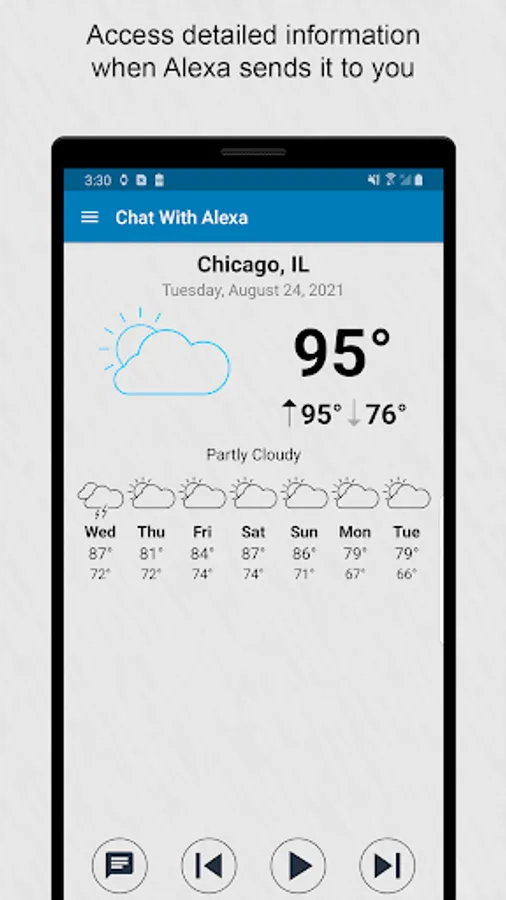 Chat with Alexa lets you talk to Alexa through text messaging. Just type your request and Alexa will give you a text response back. Use this app when: