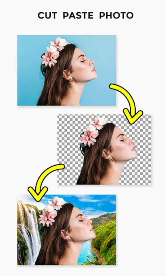 Cut images combines photo cuttings into a single image. Crop photos into squares, rectangles, hearts, circles, etc. Instantly paste and merge photos. Auto picture cut paste photo editor lets you create unique photos and replace faces using face cuts.