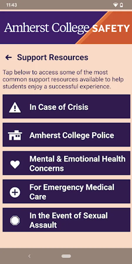 - Support Resources: Access support resources in one convenient app to enjoy a successful experience at Amherst College.